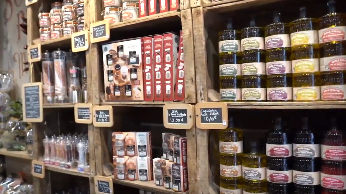Typically French establishment with artisanal products: chocolates without palm oil and without GMOs; rum baba ; spreads; olive oils; salty spreads; foie gras ; salts; peppers; confectionery; cookies